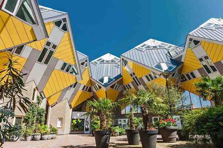Нестандартные здания напоминают масштабную инсталляцию, однако на самом деле в них живут люди. Каждый из кубов имеет 100 кв. м и занимает три этажа. Как признался архитектор Питер Блом, он решил создать “деревню в большом городе”, чтобы у жителей создавалось ощущение жизни в лесу посреди мегаполиса.