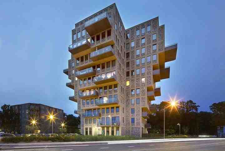 На интересную идею застройщика побудила нехватка земли. Для окупаемости проекта в доме нужно было разместить не менее 55 квартир, однако из-за ограничения помещалось только 44. Тогда бюро René van Zuuk Architekten B.V. пошло на хитрый и оригинальный ход, придумав ЖК в виде перевернутой пирамиды – с каждым этажом полезная площадь увеличивается, а благодаря крестообразному планированию масса здания распределяется равномерно.