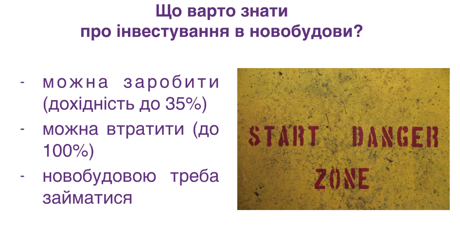«Я рекомендую своим клиентам при инвестиции в новостройку не покупать за 100%. Лучше платить понемногу, цена будет немного выше, но вы увидите, что вы заплатили 20%, но с каждым этапом строительства (котлован, коробку построили, окна сделали и т. п) вы видите, что уже можно платить дальше», — сказал он.