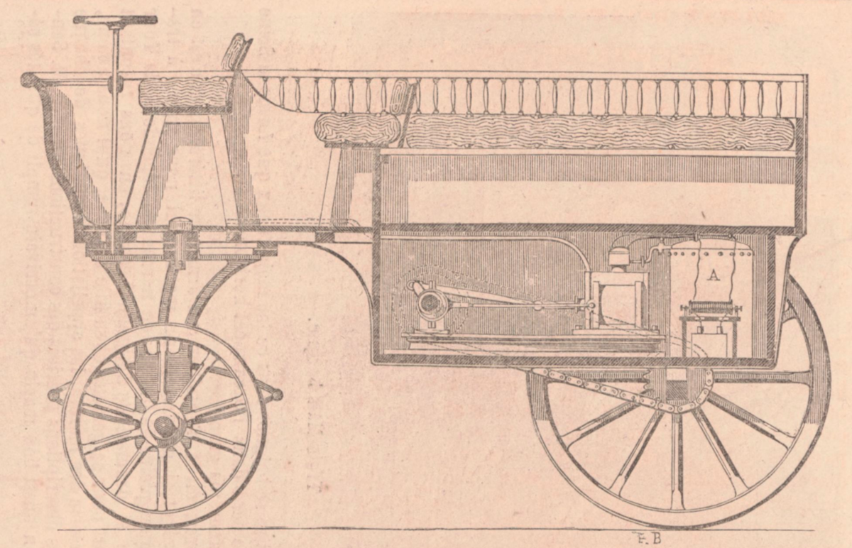 По некоторым сведениям, уже в 1860 году Ленуар изготовил небольшую повозку с таким двигателем. А в 1862-м построил вторую, более совершенную машину – Hippomobile. Это было компактное транспортное средство на трех колесах велосипедного типа, причем переднее было управляемым. А в задней ее части был установлен агрегат с горизонтально расположенным цилиндром.