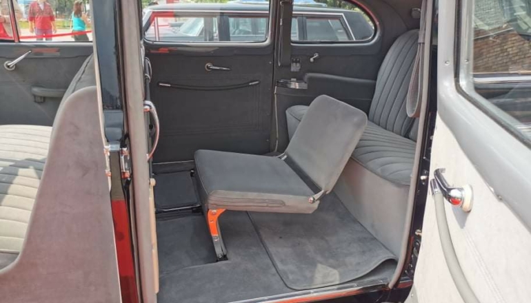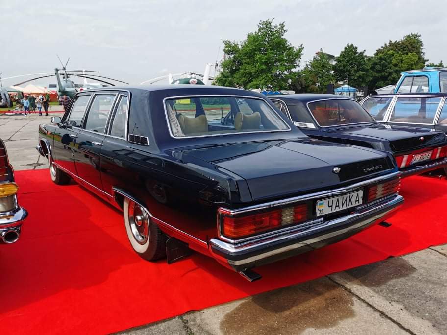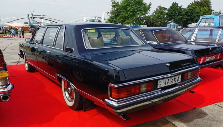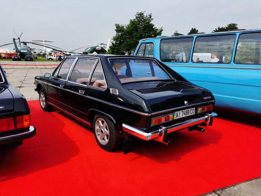 В экспозиции присутствовал и автомобиль чехословацкого производства – представительская модель Tatra 613. Двигатель воздушного охлаждения у нее был расположен сзади, из-за чего у нас эти машины шутя называли «Большим Запорожцем». Машина разрабатывалась с 1968 года, а в серию пошла в 1974-м. Примечательно, что элегантный кузов разработало известному итальянское ателье Vignale. Мотор V8 (3,5 л) развивал 165 л. с. и разгонял автомобиль до 190 км/ч. Представленная машина 1976 года выпуска принадлежала выдающемуся украинскому оперному певцу Владимиру Гришко.