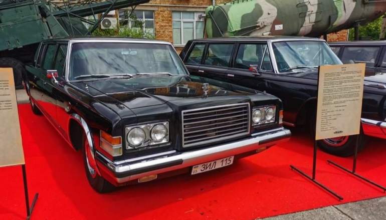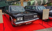 На стенде были показаны и представительские автомобили ЗИЛ более позднего выпуска. Модель ЗИЛ-114 впервые в отечественном автопроме имела трехконтурные дисковые тормоза, по лицензии фирмы Girling, откидной руль и электростеклоподъемники. Автомобиль выпускался в 1967 – 1977 гг. и постоянно обновлялся. Каждая машина собиралась вручную. Всего было сделано 113 экземпляров. Двигатель V8 (6,95 л) развивал 300 л. с. Коробка передач – автоматическая. Максимальная скорость – 190 км/ч.