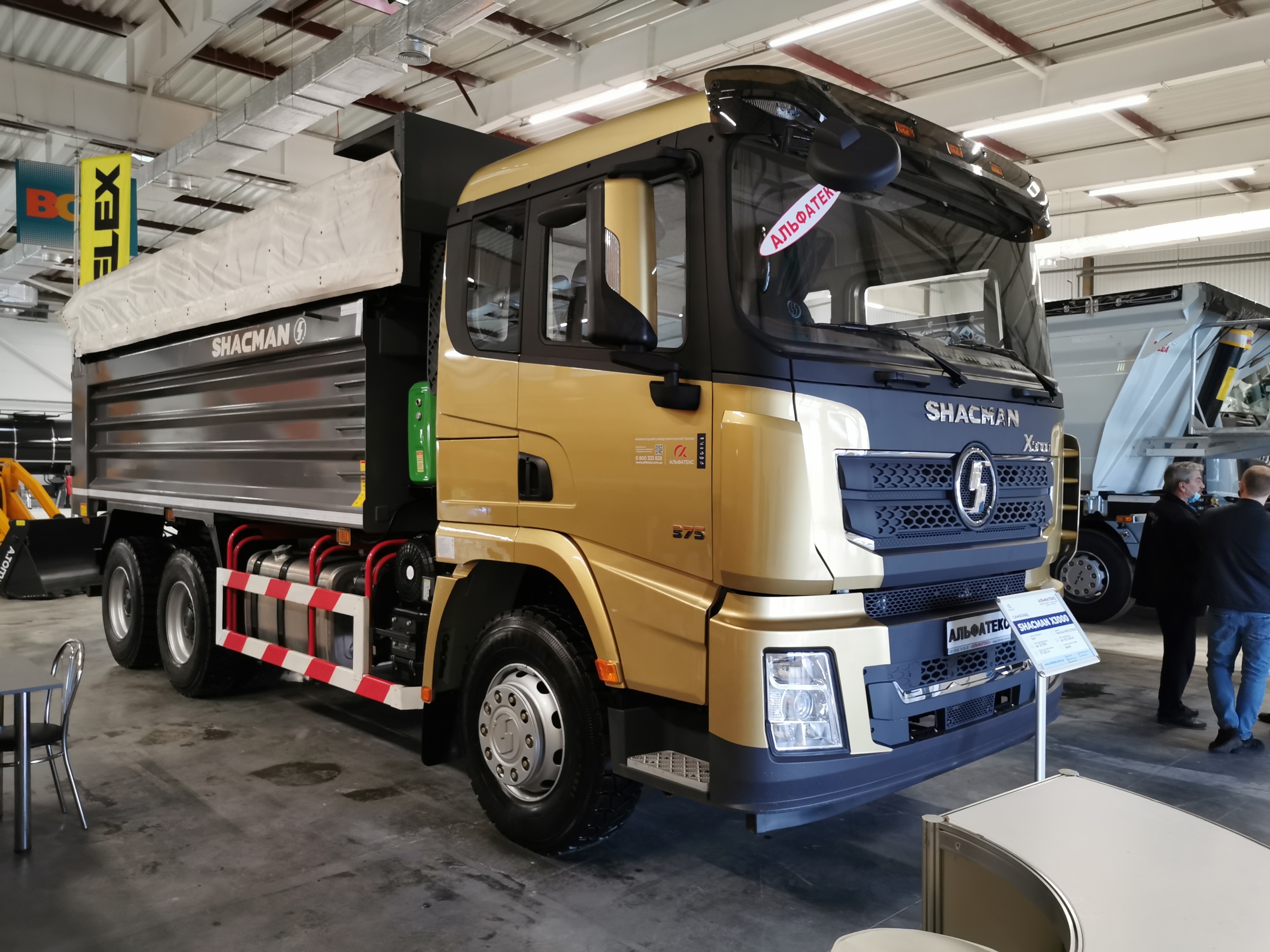И в заключение расскажем о Кременчугском заводе коммунальной техники «Альфатекс», который привез новейший строительный самосвал SHACMAN X3000 (6х4). Рядом демонстрируется и уже известная модель SHACMAN F3000 (8х4) – также с самосвальным кузовом.