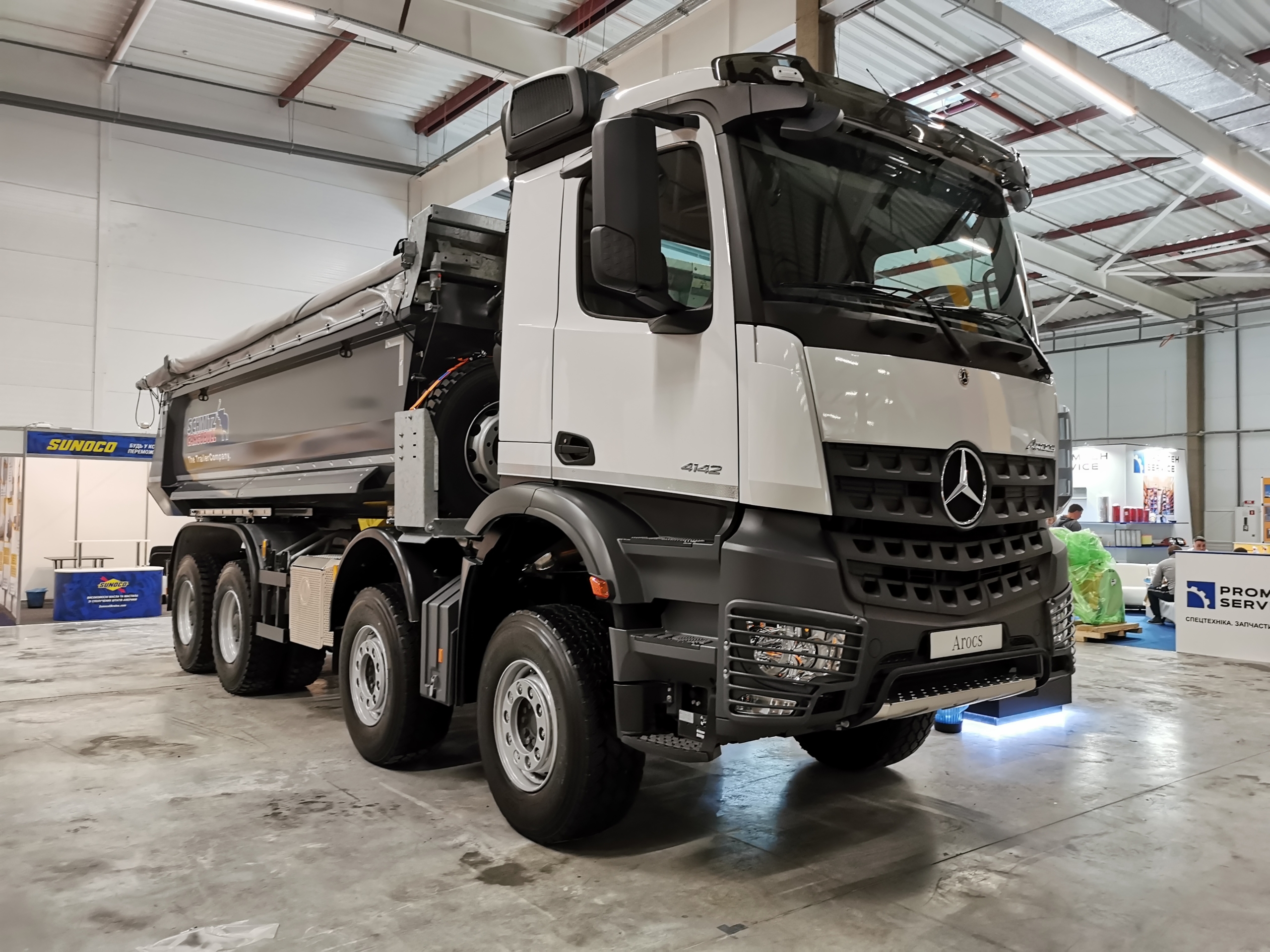 И какая же серьезная автомобильная выставка без марки Mercedes-Benz. Посетители смогут ознакомиться с грузовиком Arocs 4142 (8х4) с самосвальным кузовом Schmitz Cargobull.
