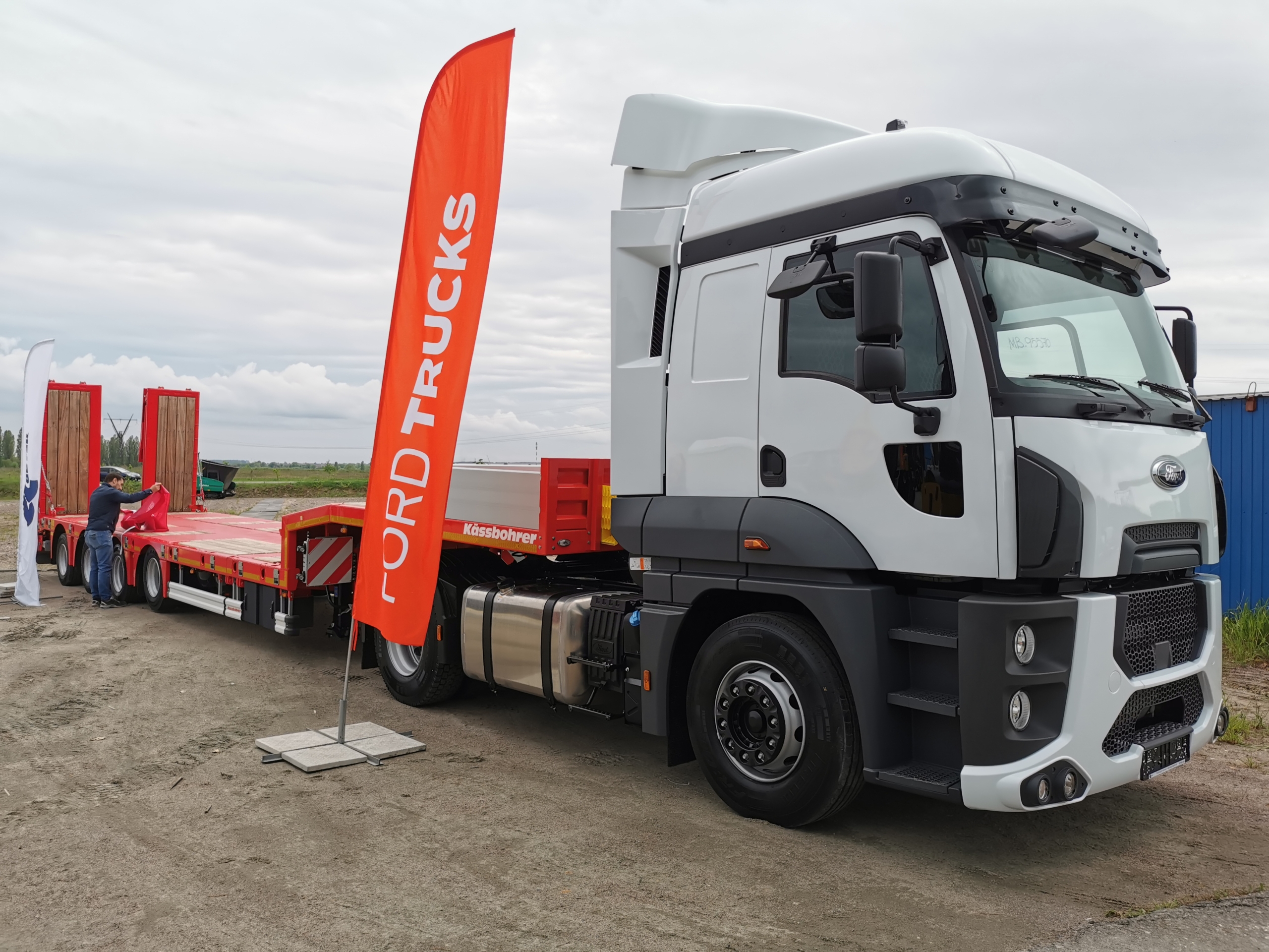 На стенде выставлена седельный тягам F-MAX («Международный грузовик 2019 года»), а также строительный самосвал 6х4 и шасси 6х4 с цистерной для перевозки битума. А на улице «АВТЕК» показывает седельный тягач Ford Trucks 4х2 с трейлером-тяжеловозом Kassbohrer.