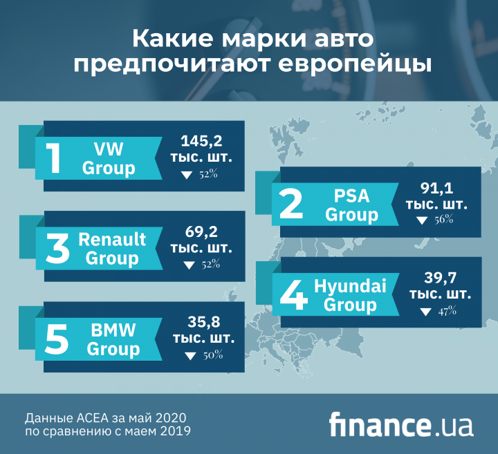 Продажи новых легковых автомобилей в странах Европейского Союза (без учета Мальты) в январе-мае 2020 упали на 41,5% – до 3,33 миллиона автомобилей по сравнению с этим периодом 2019 года.