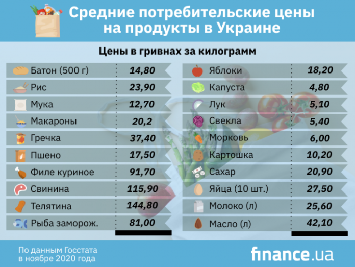 Какие продукты больше всего подрожали за 2020 год (инфографика) / Новости / Finance.ua
