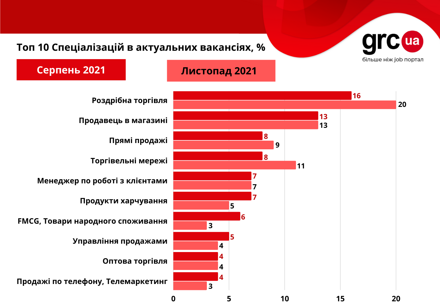 Finance.ua узнал подробности у кадрового портала grc.ua, какие профессии среди сфере Продаж больше всего востребованы.