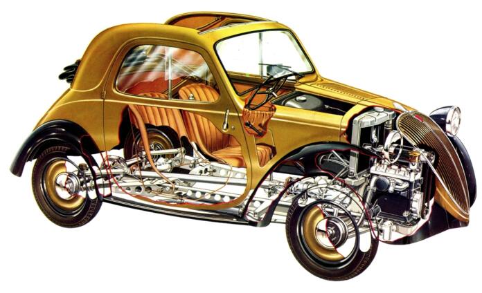 В 1937 году появилась модернизированная модель – Fiat 500A. Она получила более прочную раму с Х-образной поперечиной, новый бампер и новые задние рессоры – полуэллиптические вместо четверть-эллиптических. И что интересно, руль был перенесен с правой стороны на левую.