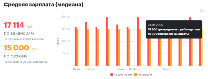 При этом сами соискатели часто указывают желаемую зарплату еще меньше – в среднем на уровне 15 000 грн. Это около $550.