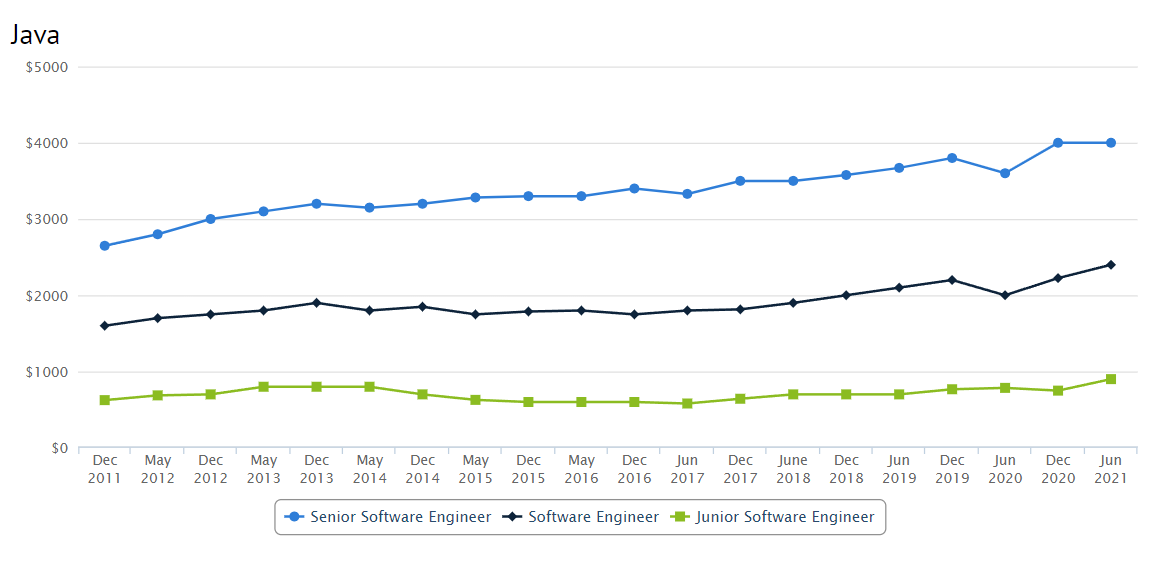 О том, сколько зарабатывают украинские программисты в соответствии с языком, на котором они пишут, можно узнать из этих графиков.