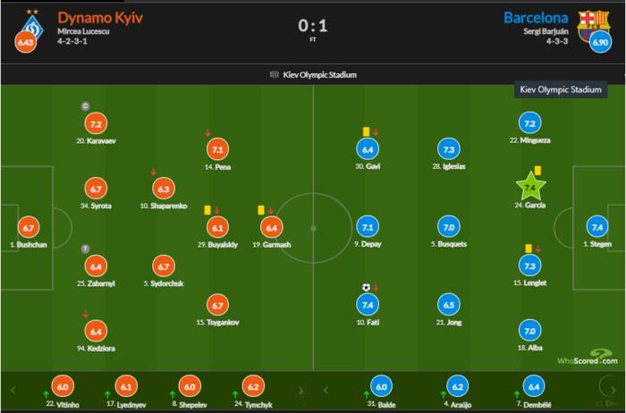 Лучшим игроком встречи был признан защитник Барселоны Эрик Гарсия — 7,4 балла.