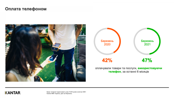 47% интернет-пользователей в возрасте 16-65 лет в городах с населением 50К+ оплачивает товары и услуги телефононом. Среди жителей Киева таких уже 51%.