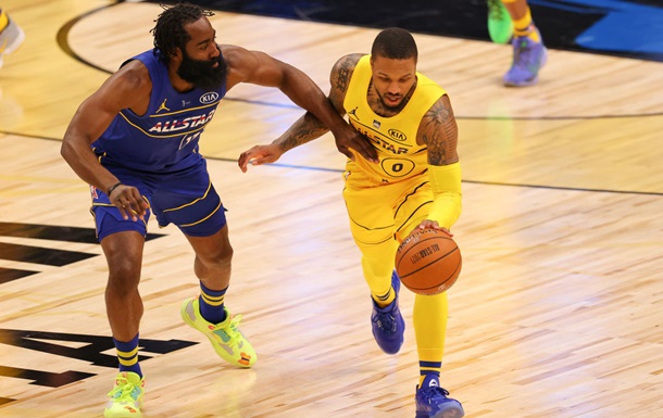 Команда Леброна: Я. Адетокумбо (35 + 7 подборов), Карри (28), Дончич (8 + 8 передач), Йокич (6 + 7 подборов), Джеймс (4) – старт; Лиллард (32), Браун (22), Джордж (17), Гобер (10 + 7 подборов), Пол (6 + 8 подборов + 16 передач), Сабонис (2).