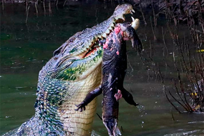 Ранее сообщалось, что посетитель южноафриканского национального парка Крюгера запечатлел, как 544-килограммовый крокодил-каннибал съел своего молодого собрата. Жертва отчаянно сопротивлялась и широко открывала пасть.