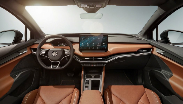 Уже в базовой версии электрокросс Шкода поставляется с цифровой приборной панелью, мультимедийной системой с крупным сенсорным дисплеем, многофункциональным рулем и широким списком систем помощи водителю. Также доступна система бесключевого доступа. Ездит электрокар на 20-дюймовых колесных дисках.