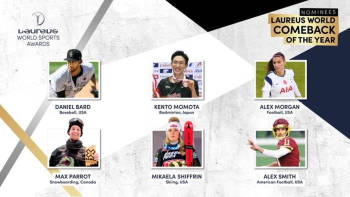 Наконец, в номинации возвращение года номинированы баскетболист Даниэль Бард, бадминтонист Кенто Момота, футболистка Алекс Морган, сноубордист Мак Паррот, горнолыжница Микаэла Шиффрин, а также игрок в американский футбол Алекс Смит.