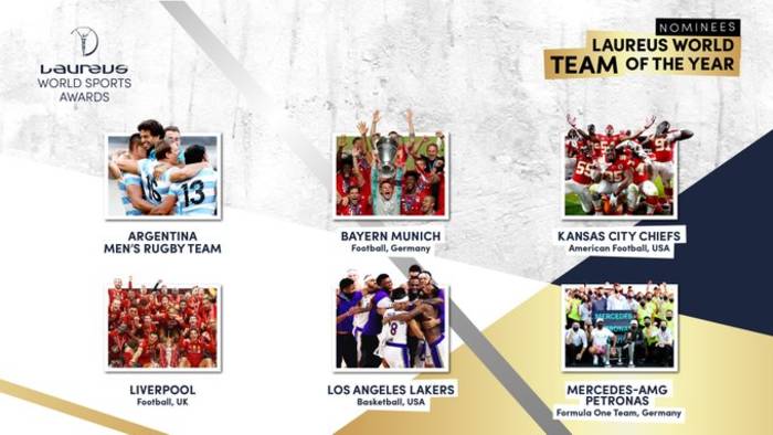 В номинации лучшая команда года – мужская сборная Аргентины по регби, футбольные Ливерпуль и Бавария, команда по американскому футболу Канзас-Сити Чифс, баскетбольный клуб Лос-Анджелес Лейкерс, а также команда Формулы-1 Мерседес.