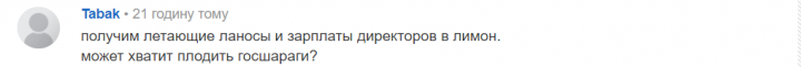 Форумчанин с ником Tabak уверен, что в случае создания государством авиакомпании украинцам предложат летать на «ланосах». В то время как директоры предприятия будут получать зарплаты в шестизначных суммах.