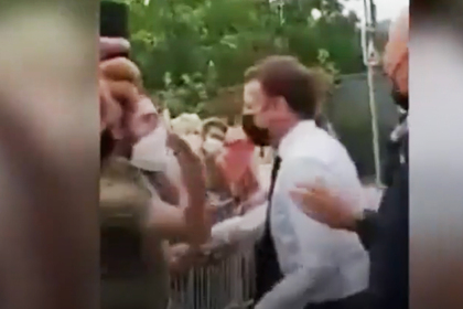 На кадрах видно, как французский лидер подходит к толпе местных жителей, находящихся за невысоким металлическим ограждением. Макрон берет одного из мужчин за руку и что-то говорит ему, а тот в ответ бьет президента по лицу. К ограждению тут же подбегает охрана, отводит главу государства в сторону и скручивает нападавшего.