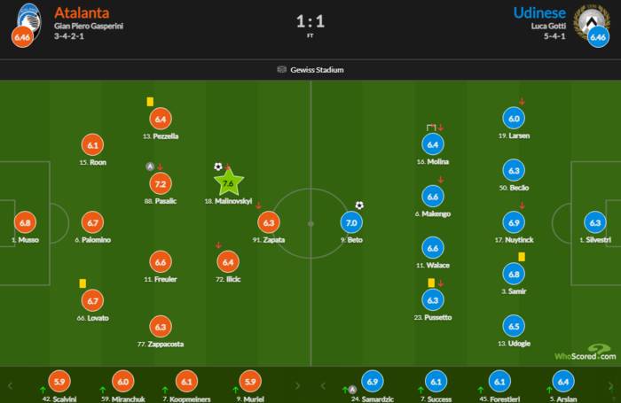 Аталанта сыграла вничью с Удинезе (1:1) в матче девятого тура чемпионата Италии.