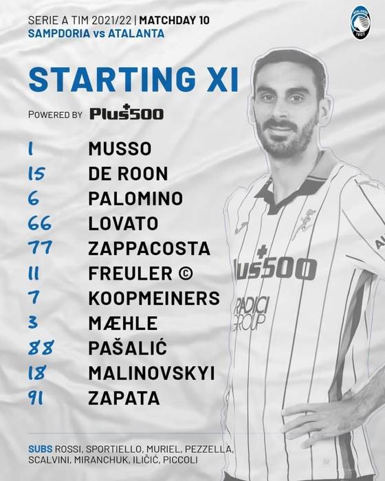 Главный тренер бергамского клуба Джан Пьеро Гасперини огласил стартовый состав команды на матч.