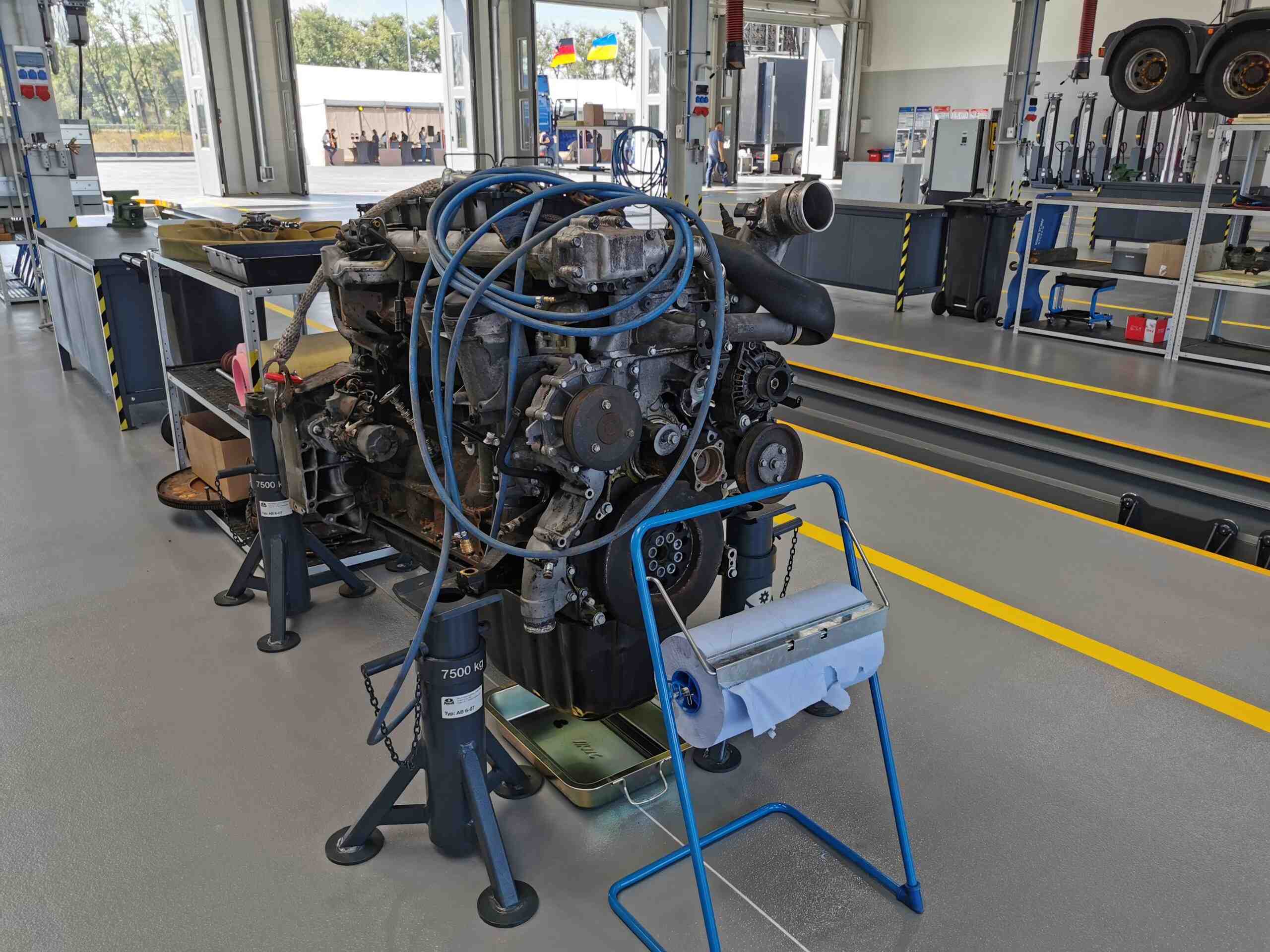 Новая авторизованная сервисная станция имеет три 25-метровые смотровые ямы, оборудованные пятью 16-тонными домкратами.
