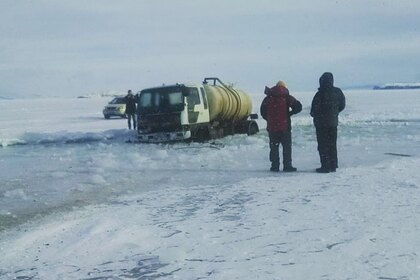 Машина для откачки нечистот провалилась в трещину на озере Байкал и застряла. Есть риск погружения переполненного автомобиля под лед. Об этом говорится в сообщении главного управления МЧС России по региону, опубликованном в Facebook.