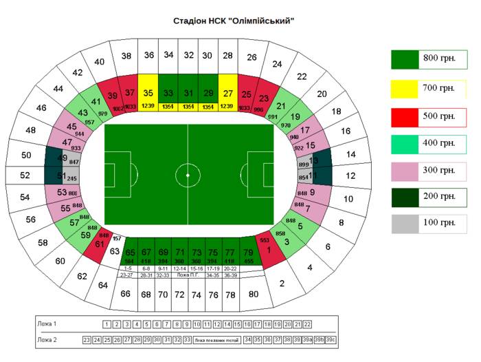 Схема доступных секторов и цен на билеты: