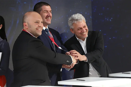 Соглашение в отношении совместного предприятия в рамках Петербургского международного экономического форума подписали генеральный директор «МегаФона» Геворк Вермишян, президент «ВымпелКома» Рашид Исмаилов и президент «Ростелекома» Михаил Осеевский.