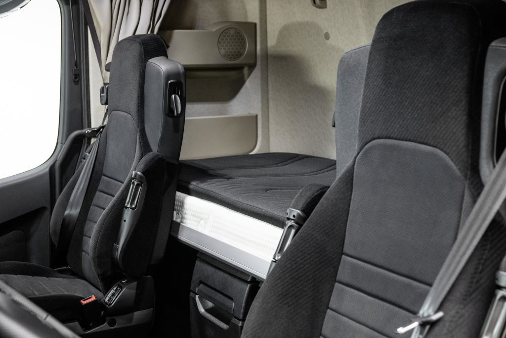 Он начинается с кабины водителя, которая на вариантах StreamSpace, BigSpace и GigaSpace имеет ширину 2,5 м и обеспечивает исключительно просторный интерьер. Отсутствие моторного тоннеля означает, что кабина имеет ровный пол, создавая действительно комфортную атмосферу. К этому также добавим улучшенную шумо- и теплоизоляцию кабины, что водители особенно оценят во время отдыха.