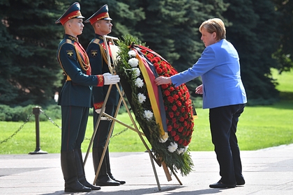 Корреспондент агентства рассказал, что Меркель прошла мимо строя Почетного караула и возложила венок с лентами в цветах немецкого триколора. За этим последовала минута молчания, а затем оркестр исполнил немецкий гимн. После церемонии лидер ФРГ села в автомобиль и отправилась в Кремль на переговоры.