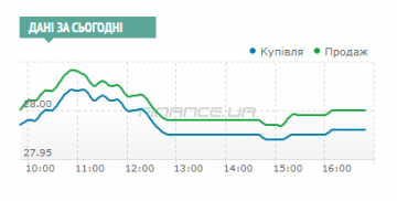 С утренних 27,99/28,01 гривен к 11:00 доллар ненадолго вырос до 28,02/28,04. С переменным успехом и незначительными отклонениями этот курс продержался почти до 12 часов, но перед самым полуднем предложение стало в очередной раз превышать спрос, и на 12:00 курс уже находился на отметке 28,01/28,025 гривен, а к обеду снизился до 27,975/27,99.