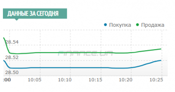 В обменниках финкомпаний: покупка 28,55 – 28,61 гривен и продажа 28,65- 28,70.