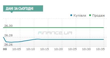 Доллар: коридор покупок и продаж 26,15 — 26,50 грн при спреде в обменниках финкомпаний в пределах до 20 коп, а в кассах банков до 25 коп.
