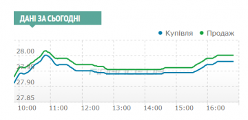 Спрос опять превышал предложение с самого утра и с утренних 27,94/27,96 доллар вырос к 11:00 до 27,28,00/28,015. В этот момент на торги стали выходить основные продавцы, которые выжидали максимальных уровней котировок. Рост предложения на короткое время не только успокоил рынок, но и привел к проседанию курса до 27,95/27,97 гривен к полудню, и до 27,94/27,955 к обеду и сразу после него.