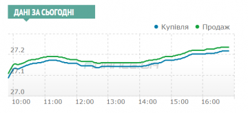 Доллар вырос на 8,5 копеек — с утренних 26,13/27,15 гривен до 27,215/27,235.