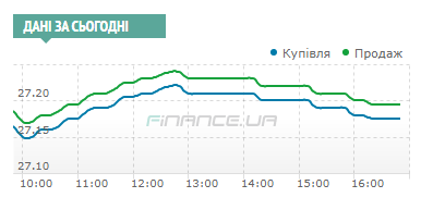 С утренних 27,15/27,17 гривен, что было ниже на 1,5 копейки закрытия среды — курс доллара быстро рос. Уже к 11 часам он подорожал до 27,175/27,195 гривен, а к обеду и сразу после него находился уже в пределах 27,21/27,23 гривен. Лишь ближе к 15 часам котировки начали постепенно откатываться. До 27,19/27,21 гривен к 16 часам и до 27,175/27,195 к концу сессии.