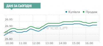 В итоге, в первой половине сессии “страхи” покупателей победили и котировки выросли с утренних 26,85/26,87 до 26,865/26,885 гривен к 11 часам, а к 12:00 и до 26,89/26,91. На период с 11 до 13 часов пришелся пик клиентских операций на торгах вторника и покупатели психологически были готовы к дальнейшему росту курса. Результат не заставил себя долго ждать. На обед дилеры уже пошли при уровне 26,895/26,915 гривен, а к 14 часам котировки выросли еще до 26,915/26,935.
