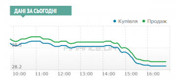 В итоге, за день доллар с утренних 28,31/28,33 гривен после небольшого роста до 28,33/28,35 к 11 часам, уже к полудню стал проседать. В 12 часам его котировки находились уже в пределах 28,305/28,325 гривен, а после обеда упали до 28,28/28,30 к 15 часам и до 28,215/28,235 к концу дня.