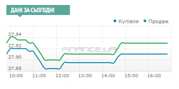 В первой половине дня прошла основная часть сделок с небольшим превышением предложения над спросом. Продавцы первые два часа еще сопротивлялись и пытались удержать оборону по курсу и не снижать свои ценники, но им это удавалось слабо. В итоге, с утренних 27,915/27,94 гривен доллар к 11:00 подешевел до 27,915/27,93 гривен, а к 12:00 просел до 27,885/27,90.