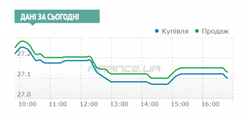 К 12 часам котировки остановились на отметке 27,185/27,205 гривен, но к обеду просели до 27,10/27,14 за счет выхода основной части продавцов.