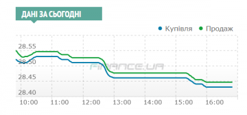 На фоне превышения предложения котировки опустились до 28,44/28,455 гривен к 16 часам и до 28,43/28,445 к концу сессии.