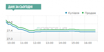 Предложение снова почти всю сессию превышало спрос и это отразилось на котировках. За день доллар подешевел еще на 9 копеек — с 27,495/27,515 гривен до 27,405/27,425 к концу торгов. Покупатели явно не спешили заключать сделки, играя «на понижение». И эта тактика сегодня опять сработала. Продавцы после недолгого сопротивления были снова вынуждены опускать свои ценники, чем и пользовались покупатели. НБУ на рынок не выходил и излишек предложения «давил» на котировки.