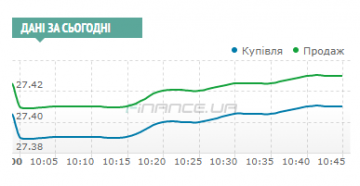 Доллар: коридор покупок и продаж 27,30 – 27,60 грн при спреде в обменниках финкомпаний в пределах 15- 20 коп, а в кассах банков 15-25 коп.