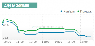 1. Сохранение неопределённости по дальнейшему поведению курса даже с учетом того, что доллар за день подешевел с утренних 28,645/28,66 до 28,52/28,55 гривен к концу сессии.