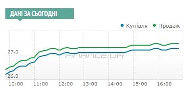 Это оказалась своевременная мера. Дело в том, что спрос превышал предложение практически с самого начала сессии и с утренних 26,93/26,95 к 11 часам курс вырос до 26,965/26,985 гривен, а к полудню достиг отметки 27,0050/27,025. При этом, быстрота, с которой этот уровень был пройден говорила о том, что это явно не предел по ценникам продавцов.
