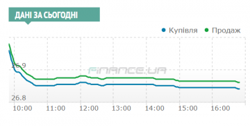 В первый раз он вышел с самого утра и купил стандартные $5 млн по 26,89 гривен, чем частично удержал котировки от падения. Но как только регулятор ушел – курс опять начал быстро проседать. НБУ вышел на рынок второй раз с покупкой по 26,85 гривен и простоял с этим ценником уже до окончания активной фазы сессии.