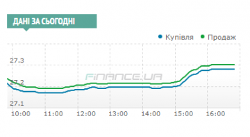 Доллар вырос с утренних 27,19/27,22 гривен до 27,28/27,30.