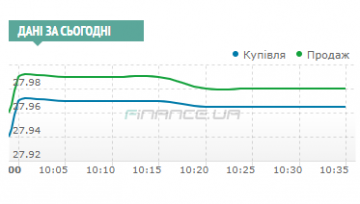 Доллар: коридор покупок и продаж 27,70 — 28,10 грн при спреде в обменниках финкомпаний в пределах 15−20 коп, а в кассах банков — до 20−25 коп.